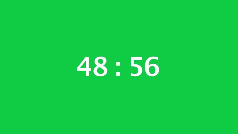 Digital countdown timer with a green screen background. Time counts down from 49 minute to 48 minute. Free Video
