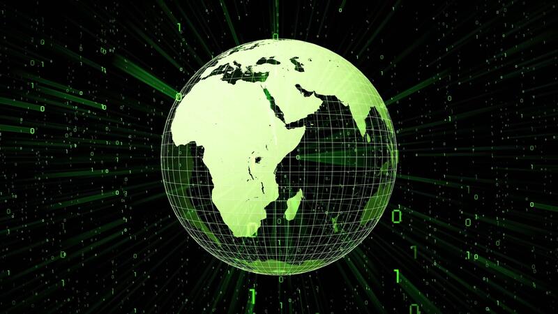 Rotating World Map with Matrix Style Binary Code in Background Pro Video