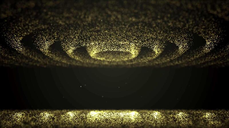 luxurious and elegant animated background featuring shimmering golden particles forming concentric ripples that descend upon a reflective, sparkling surface. Pro Video