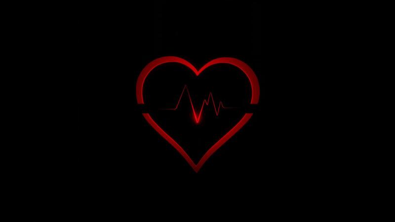 Beating Red Heart with Pulse Waves on Black Background Loop Free Video