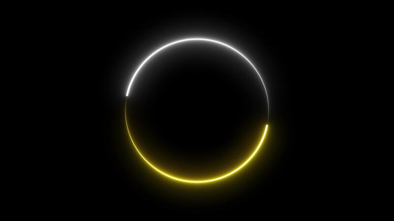 Double Laser circle frame white and yellow color glowing neon loop motion animation, isolated on black Color Background, 4K resolution Pro Video