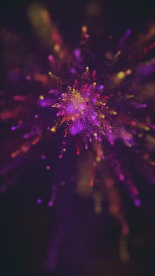 Vibrant colorful vertical abstract background with an explosion of multicolored particles flowing towards the camera. Full HD and looping particle animation. Free Video