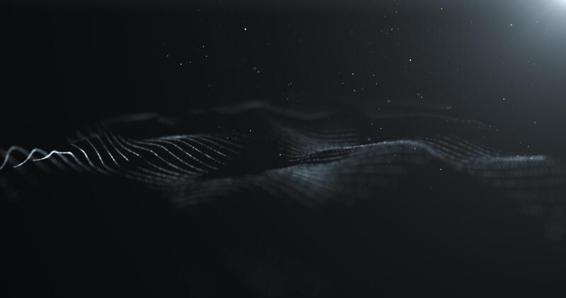 Abstract glowing wave of particles and dots moving on dark background with flying glitter particles, big data visualization, futuristic and digital background, 3D, 4K, seamless loop Pro Video