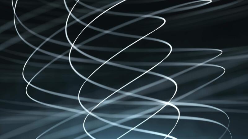 Futuristic abstract particles form swirling geometric patterns on a dark background, creating a dynamic, technological digital hi-tech spiral wave effect for contemporary design projects. Pro Video