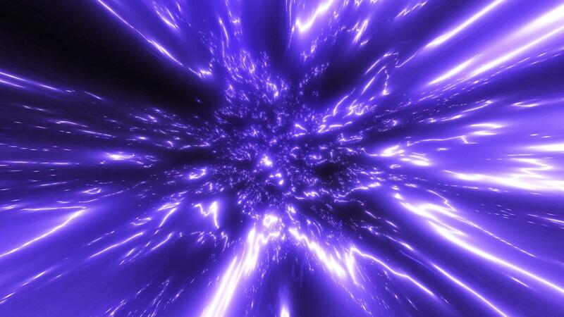An explosive energy light effect in vibrant purple tones, simulating warp speed or energy travel through space. Ideal for sci-fi, motion graphics and high-tech visual effects. Pro Video