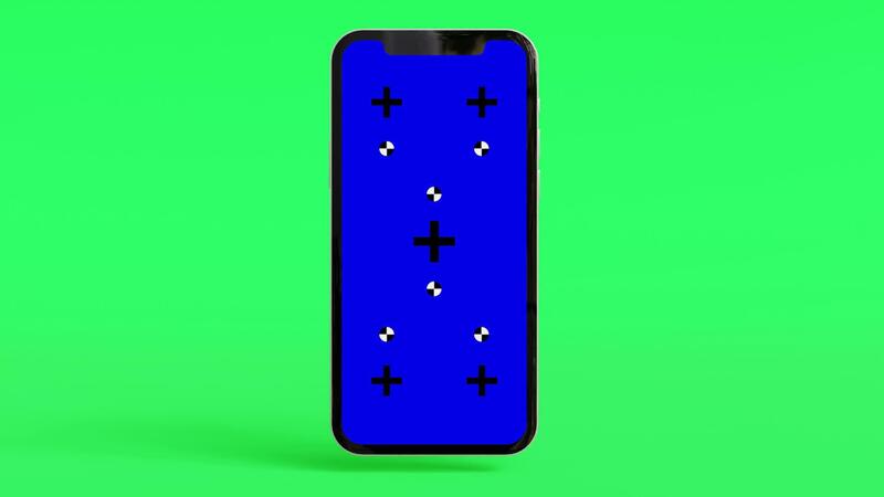 Animation of Smartphone with Blue Screen Display Moving Away from Camera and Rotating from Horizontal to Vertical on Green Background Free Video