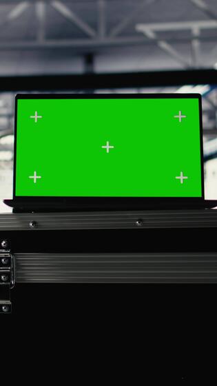 Vertical Green screen notebook in data center training infrastructure for artificial intelligence workloads. Mockup laptop in server room enabling machine learning training and inference Pro Video