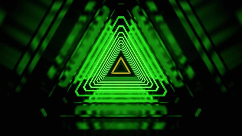 Yellow and Green Neon Pulsating Triangular Cyber Tunnel Background VJ Loop in 4K Free Video