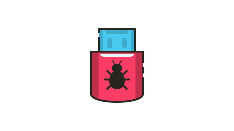 Animated icon Bug on USB flash drive icon. Animated icon with Alpha Channel looping. Pro Video