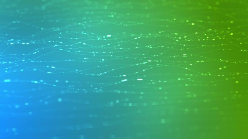 Abstract background with glowing particles and wavy lines on a blue and green gradient. Futuristic digital concept. Pro Video