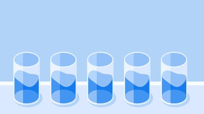 Four identical glasses, each containing water, are lined up evenly to create a sense of symmetry, repetition, and orderly composition Free Video
