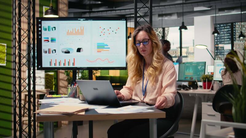 Ambitious entrepreneur writes a report informed by real time data insights, solving daily tasks at her desk. Strategic thinking and ambition to drive continuous development and progress. Camera A. Pro Video