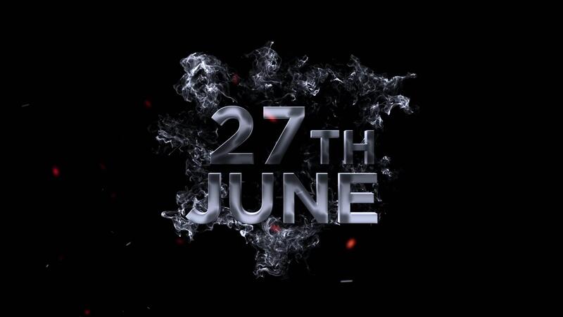 27th june text with smoke effect and small red particle elements on a black background Pro Video