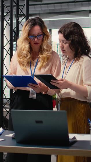 Vertical Powerful team of associates review analytics from TV monitor, applying machine learning tools and neural networks to drive development and achieve corporate goals. Camera A. Pro Video