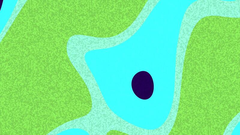Abstracts Liquid Noise Abstract terrain animation with a dark blob transforming into a unique shape over a colorful landscape Free Video