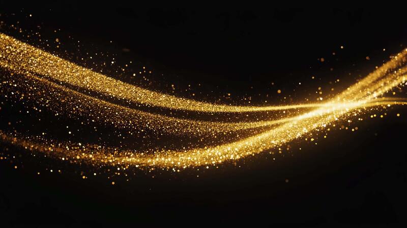 Stunning golden glitter particle streams flow dynamically against a dark background for festive events Free Video