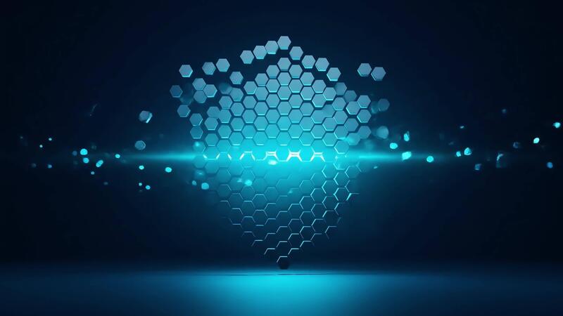 Abstract blue hexagonal grid floating in cyberspace with light streak Free Video