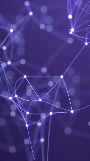 Abstract network visualization with glowing nodes and connecting lines on a dark purple background. Futuristic digital data or neural network concept. Ideal for tech and science themes. Pro Video