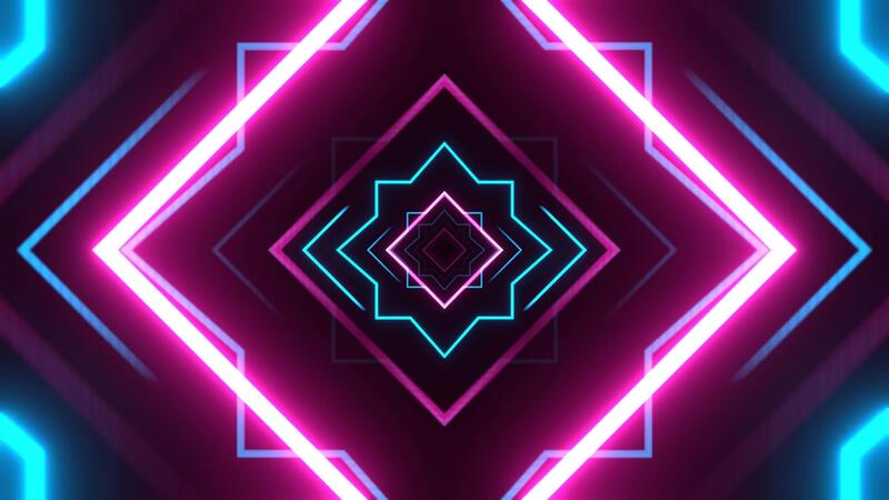 Cyan and Pink Neon Tunnel with Geometric Strobe Shapes Background VJ Loop in 4K Pro Video