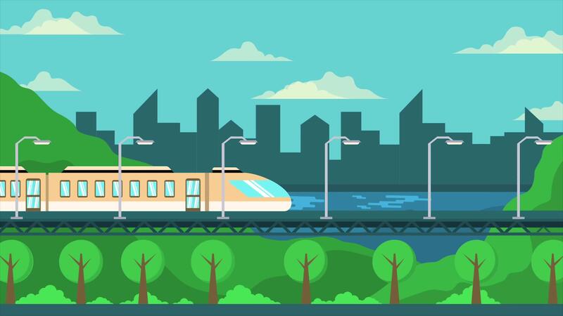 Animated landscape background with train moving with a skyscraper build motion graphic nature scenery calm scene for compositing buildings scene Free Video