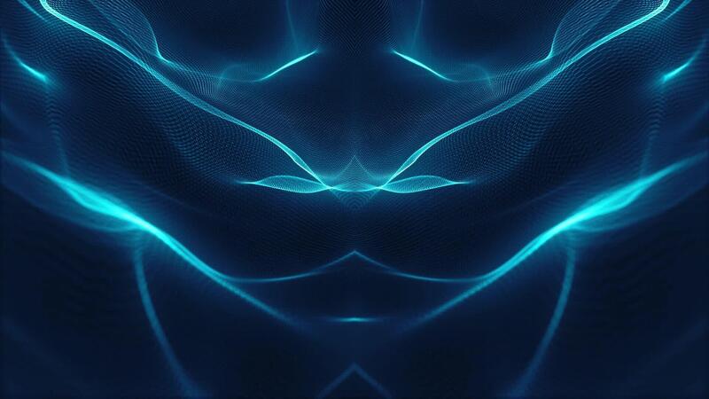 Futuristic blue abstract background with flowing light waves and beams and intricate digital mesh textures, creating a dynamic and symmetrical design. Glowing fractal wave effect. Full HD loop. Free Video