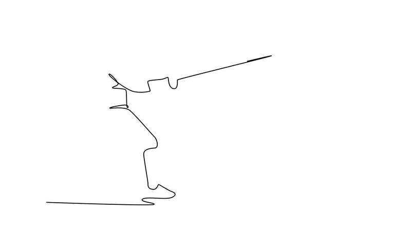 Animated self drawing of continuous line draw strong fencer is poised to strike with an extended foil. Representing tactical readiness and focus before an engagement. Full length single line animation Pro Video