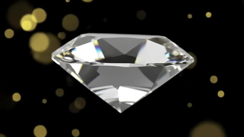 Rotating Diamond on Black Background with Gold Bokeh - Seamless Loop, 3D Animation Free Video