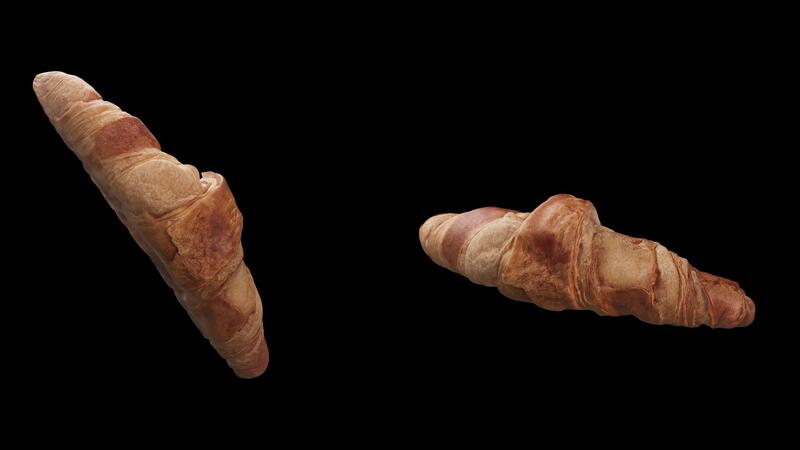 Cyclic rotation of two types of croissants around their axis. Loop motion. Close-up. Alpha Channel. Pro Video