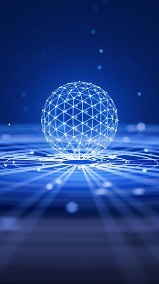 Seamless loop of a luminous 3D network sphere hovering over dynamic grid waves on a deep blue background. Ideal for technology, data, or digital innovation concepts. Pro Video