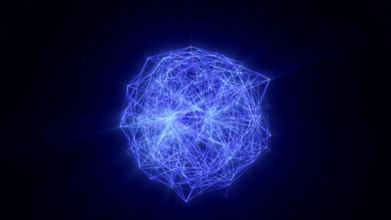Glowing blue digital energy sphere with interconnected lines and a dynamic network structure on a dark background Free Video