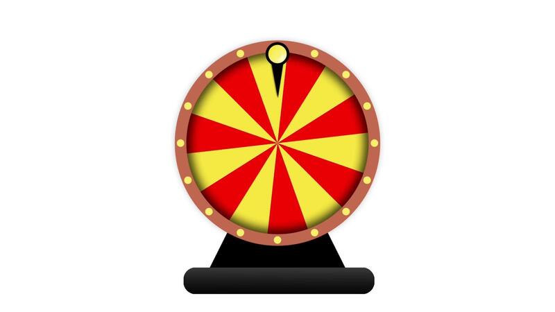 Spinning prize wheel animation. Red and yellow wheel of fortune in a seamless loop. Includes versions on a white background and green screen for chroma key. Pro Video