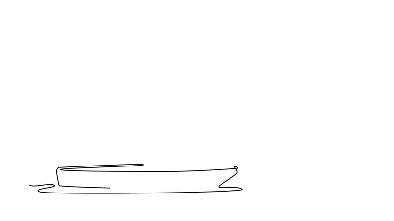Self drawing animation of single line draw a man in boat fighting catch with bent fishing rod. Symbolizing adventure, determination, and thrill of fishing. Continuous line draw. Full length animated Pro Video