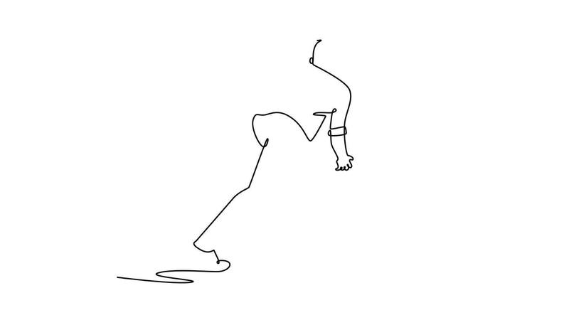 Animated self drawing of continuous line draw back view of male bowler releasing bowling ball in arena. Symbolizing the smooth motion and focused action of the sport. Full length single line animation Pro Video