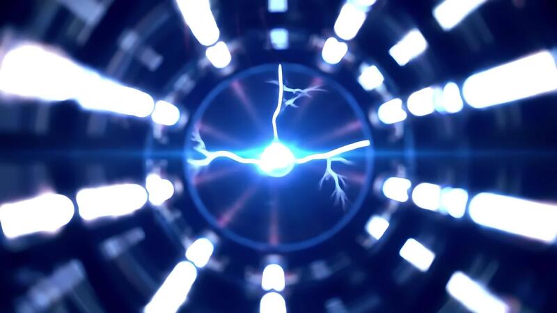 Seamless loop of a futuristic technology background showing a neuron or AI core firing in a data tunnel. Pro Video