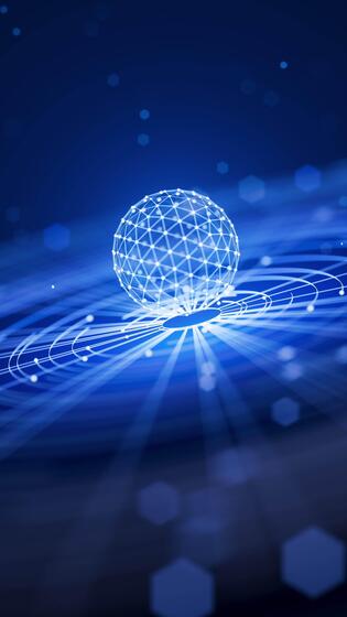 Seamless Sci Fi loop of a luminous digital sphere above dynamic blue grid waves, representing futuristic technology, AI, cyberspace, and innovation. Pro Video