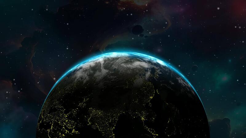 Unique Animated Universe with Earth Rotating in Space While Stars and Nebula Glow in an Exclusive Premium Background Design Pro Video