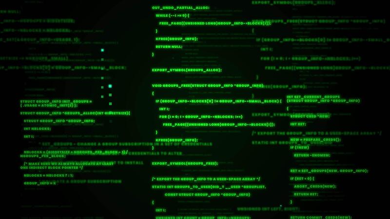 Looping Digital Binary Code and Data Flowing on a Screen with Glitch Effect. Pro Video