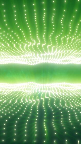 Abstract glowing green light waves with luminous dotted patterns forming a futuristic background Free Video