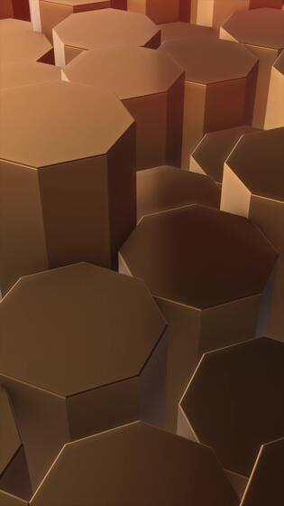 Abstract golden hexagonal columns forming geometric futuristic structure in 3D Free Video