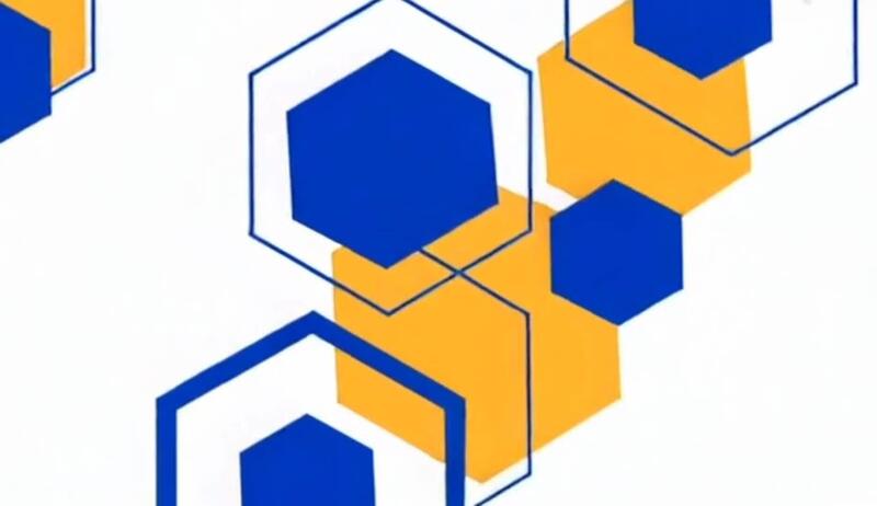 Dynamic animation featuring overlapping blue and orange hexagons that smoothly transition and move, creating a vibrant and modern geometric visual effect. Free Video