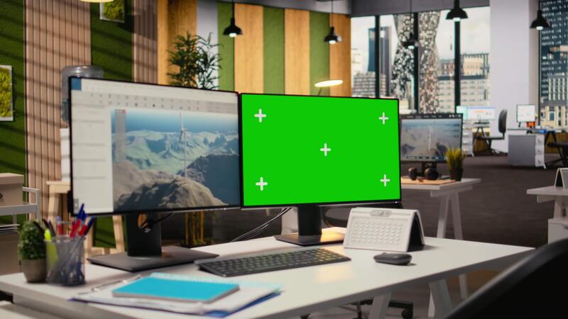 Wind turbine CAD design program on isolated screen computer used for alternative energy research in engineering office. App on mockup PC used for digital modeling of wind energy generator hardware Pro Video