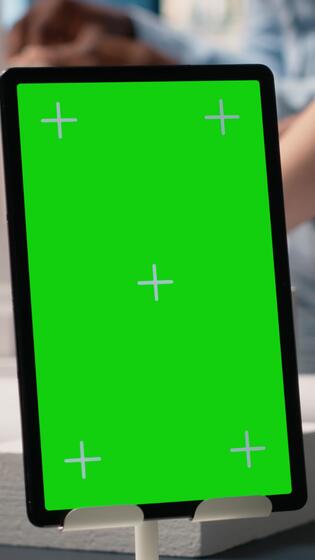 Vertical Engineers team share master plan ideas next to chroma key display, using 3D architectural models and blueprints for construction layout details. Modern design city planning in a session. Camera B. Pro Video