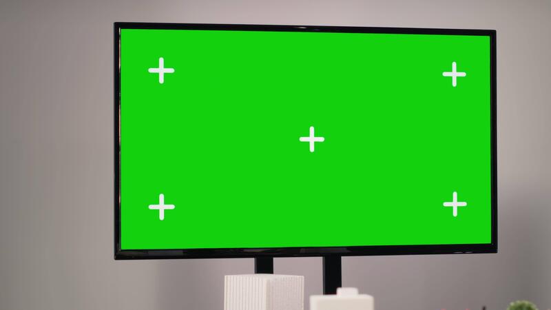 Empty desk layout in architectural real estate office with chroma key, building project preparation featuring property search documents and blueprints. Zoning regulations for approval. Camera A. Pro Video
