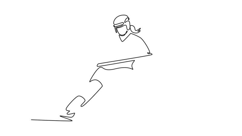 Self drawing animation of single line draw front view of attractive female ice hockey player is skating. Representing agility, power, and graceful movement. Continuous line draw. Full length animated Pro Video