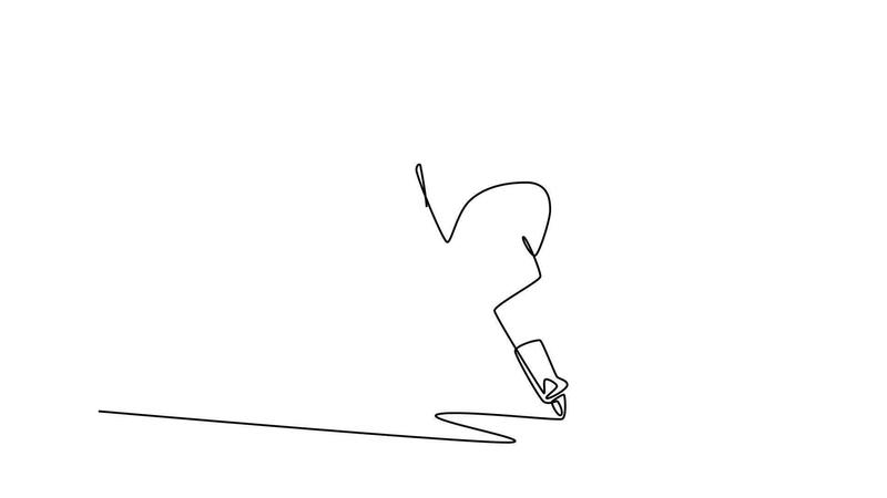 Animated self drawing of continuous line draw back view male ice hockey player in powerful run stance with his stick. Symbolizing aggressive action, focus, balance. Full length single line animation Pro Video