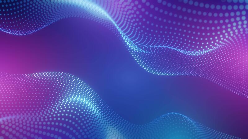 Abstract wave of glowing particles in gradient blue and purple background, perfect for technology, digital flow, AI concepts, presentations, and modern futuristic design templates. Pro Video
