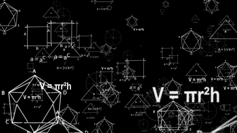 Dynamic Mathematical Formulas And Geometric Shapes On A Black Background An Abstract Scientific Visualization, A Complex And Organized Pattern Of Mathematical Schematics.a Technical, Blueprint-like Ba Free Video