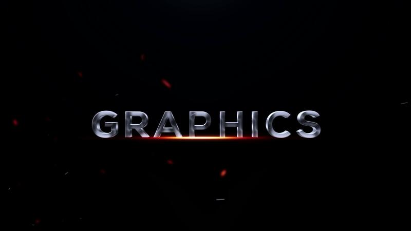 The word graphics in a metallic 3d font with a fiery glow and particles on a dark background, representing visual design and creativity Pro Video