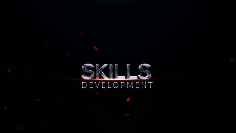 Shiny 3d text skills development with fiery glow and particles on dark background, symbolizing expertise and talent Pro Video