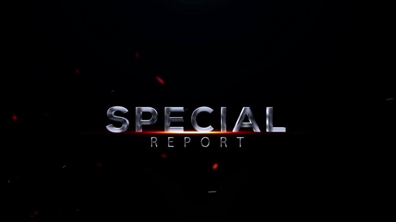 Dynamic 3d text animation with fiery embers and particles, displaying the word special report Pro Video